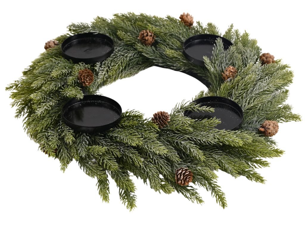 Veniec adventný s mini šiškami jemne poprášený 43 cm