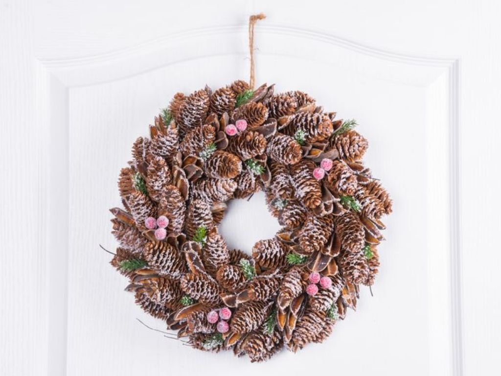 Veniec MagicHome Vianoce, zasnežený, šišky, 37x09x37 cm