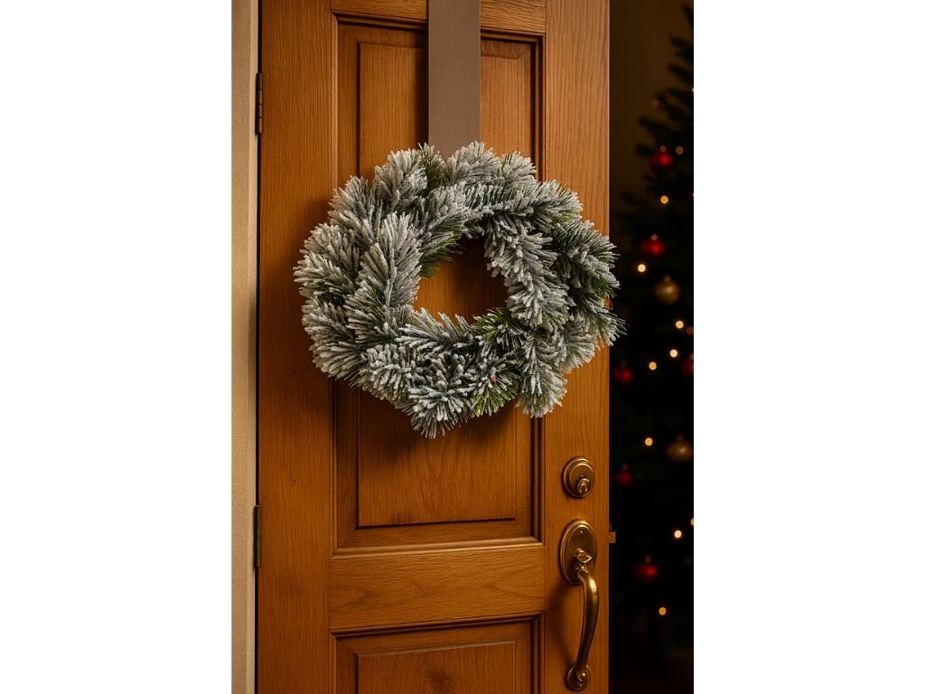 Vďaka priemeru 38 cm je veniec ideálny na zavesenie na vchodové dvere, do predsiene či na stenu ako elegantná zimná dekorácia. Pevná kovová podložka zaručuje stabilitu, takže veniec si zachová svoj tvar aj pri dlhodobom používaní. Môžete ho nechať v minimalistickej podobe pre moderný, čistý vzhľad alebo ho dozdobiť podľa vlastnej fantázie – mašľami, ozdobami, sušeným ovocím či LED svetielkami.
