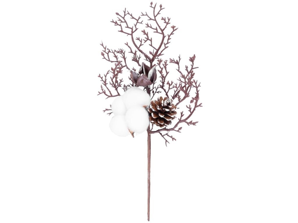 Vianočná dekorácia MagicHome vetvička s bavlnou a šiškou dotvorí čarokrásnu atmosféru Vianoc vo vašom domove. Výška je 30 cm.