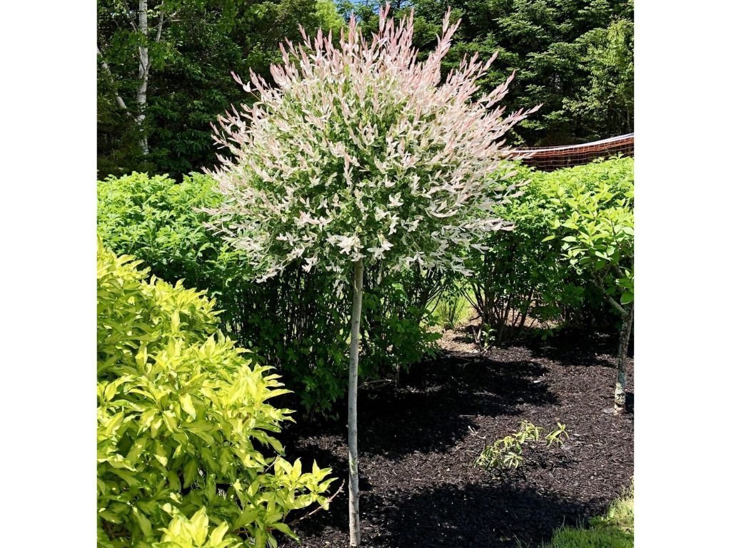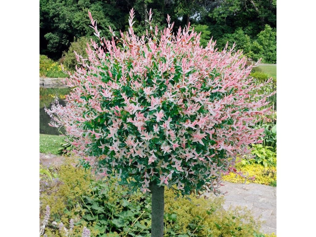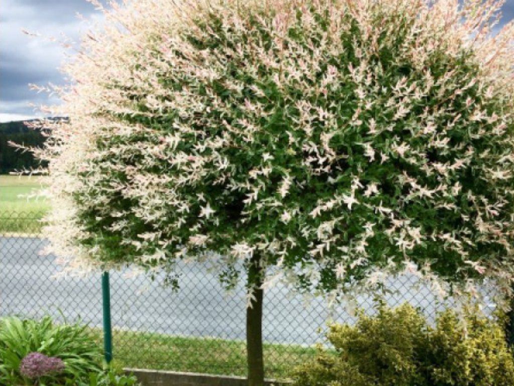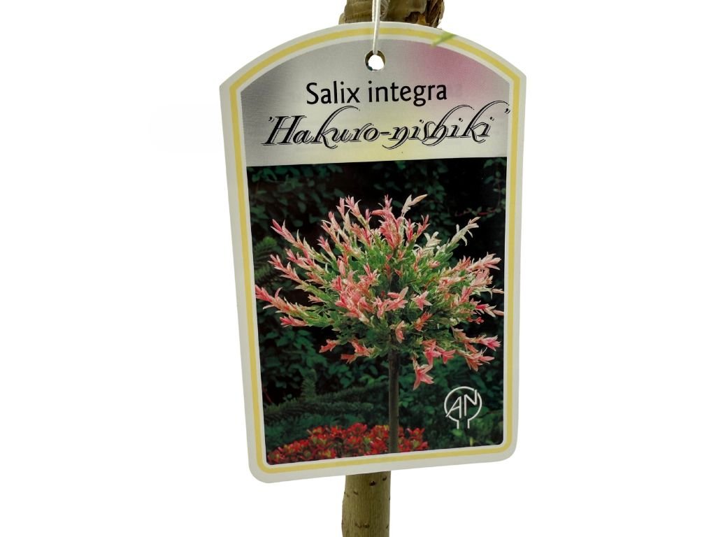 Vŕba japonská 'Hakuro Nishiki' je nádherný okrasný opadavý strom, ktorý je populárny pre svoje farebné lístie a elegantný rast. Táto rastlina je obľúbenou voľbou pre záhrady, terasy a parky po celom svete. Jedným z najvýraznejších rysov 'Hakuro Nishiki' sú jej listy. Listy sú malé, úzke a majú nádhernú farebnú paletu. Pri rašení sú nové listy svetlozelené s krémovými alebo bledoružovými okrajmi, čo dáva rastline svieži vzhľad. Neskôr sa farby lístia menia, pričom zelená farba zostáva v strede a okrajové časti listov nadobúdajú stávajú bieloružové melírovanie. Tento kontrastný vzhľad dáva rastline celkový efekt dúhových farieb.